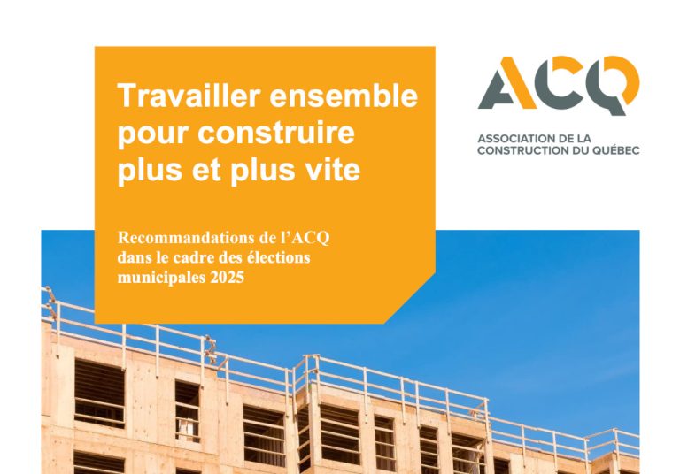 L’Association de la construction du Québec (ACQ) a dévoilé sa plateforme électorale en vue des élections municipales québécoises