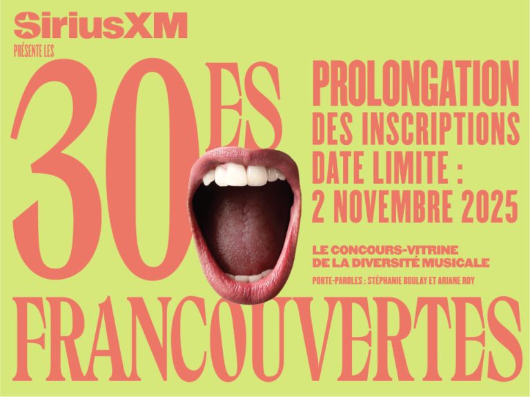 La période d’inscription à la 30e édition des Francouvertes est prolongée jusqu’au 2 novembre! Les auteur.rice.s-compositeur.rice.s-interprète.s et formations qui chantent en français ou