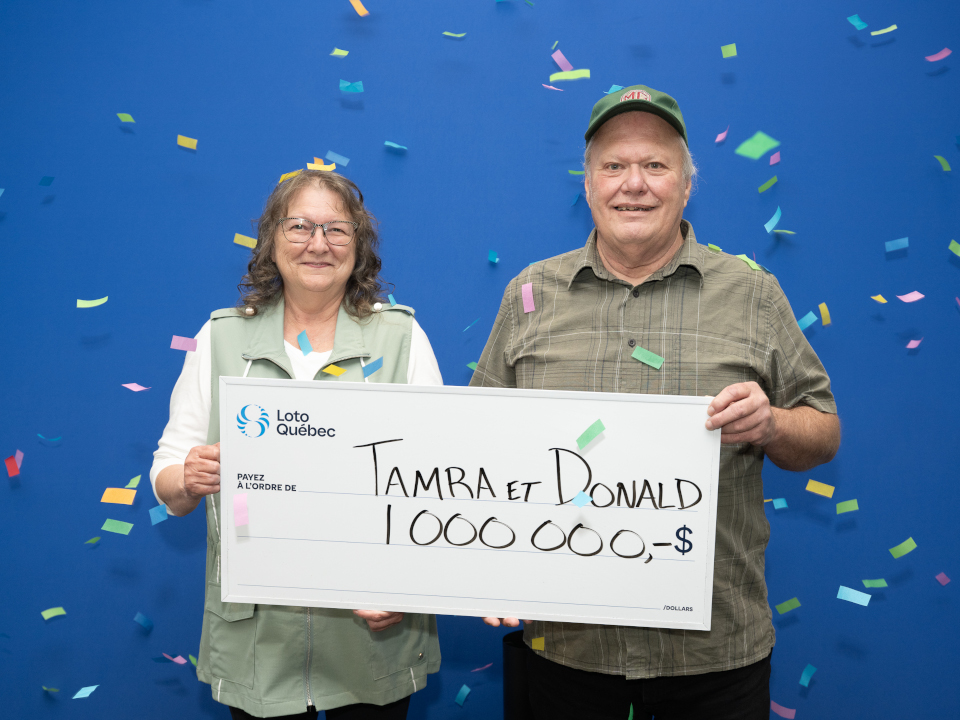Donald Darou et Tamra Grinsell, un couple de la Montérégie, ont remporté l’un des gros lots de 1 000 000 $ du billet à gratter En argent. Le billet a été acheté au dépanneur Honolulu, situé sur le boulevard Saint-Joseph à Châteauguay.